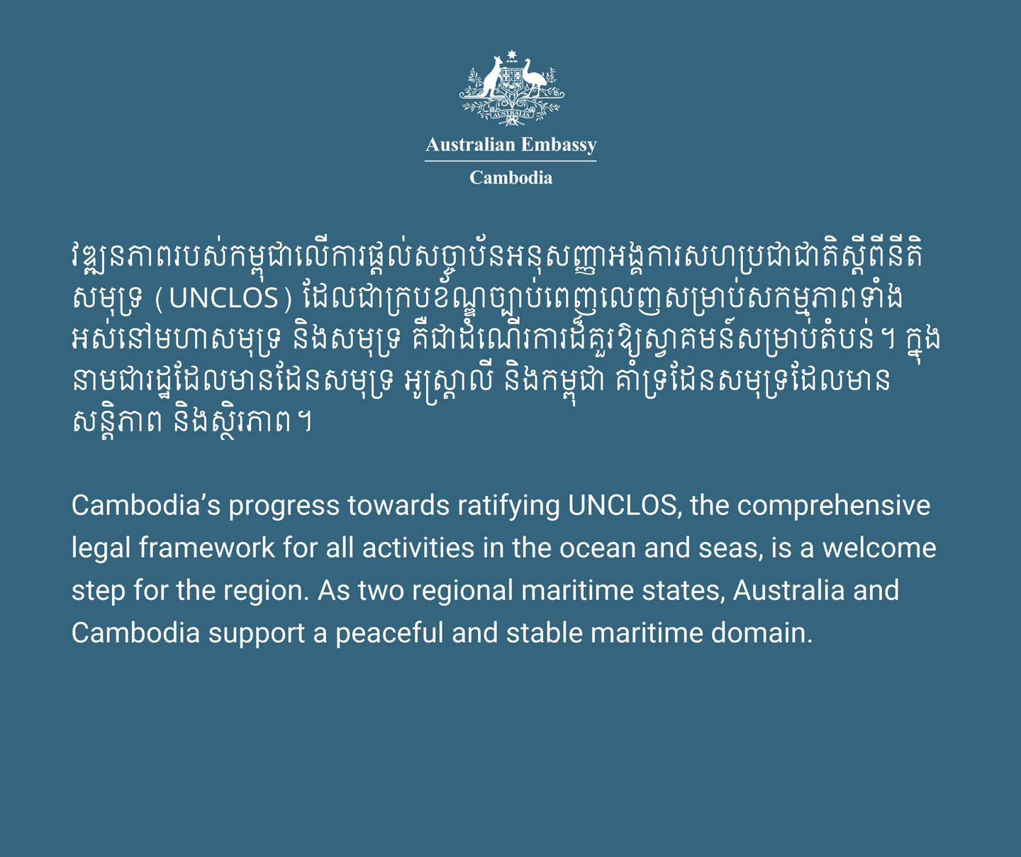 Australia Welcomes Cambodia’s Move Toward Ratifying UNCLOS Australia Welcomes Cambodia’s Move Toward Ratifying UNCLOS