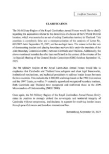 The Kingdom of Cambodia and the Kingdom of Thailand have reaffirmed their commitment to peace and stability along their shared border, following the 1st Special Meeting of the General Border Committee (GBC) held on Wednesday September 10, 2025 in Koh Kong province. The meeting was co-chaired by H.E. General Tea Seiha, Deputy Prime Minister and Minister of National Defence of Cambodia, and H.E. General Nattaphon Narkphanit, Acting Minister of Defence of Thailand.