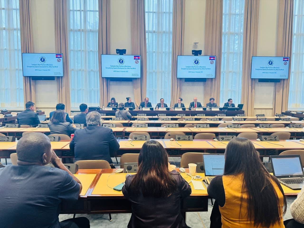 Geneva, Switzerland, 3 December 2025 — His Excellency Ly Thuch, Senior Minister and First Vice President of the Cambodian Mine Action and Victim Assistance Authority (CMAA), expressed profound regret over Thailand’s serious violations of the principles of the Ottawa Convention and the spirit of cooperation among its States Parties. His remarks were delivered as Cambodia led the side event titled “Strengthening International Cooperation Through Capacity Development for a Mine-Free World”, held on 3 December 2025 in Geneva, Switzerland.