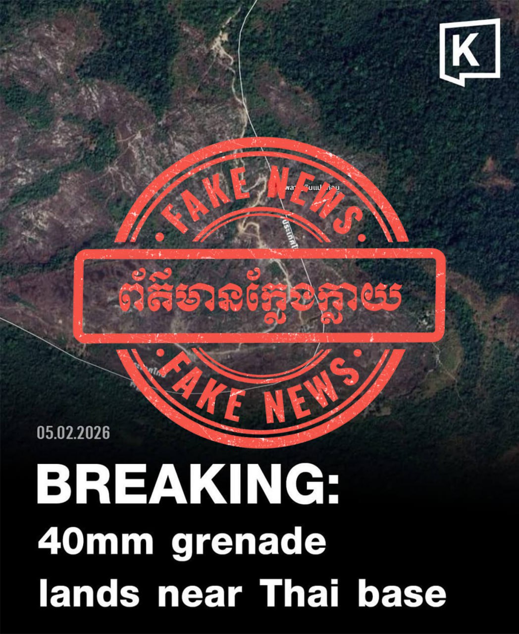 PHNOM PENH, Feb. 5, 2026 — Cambodia’s Ministry of National Defence on Thursday rejected as false reports by Thai media claiming that a 40-millimetre grenade had landed near a Thai military base close to the Cambodia–Thailand border.