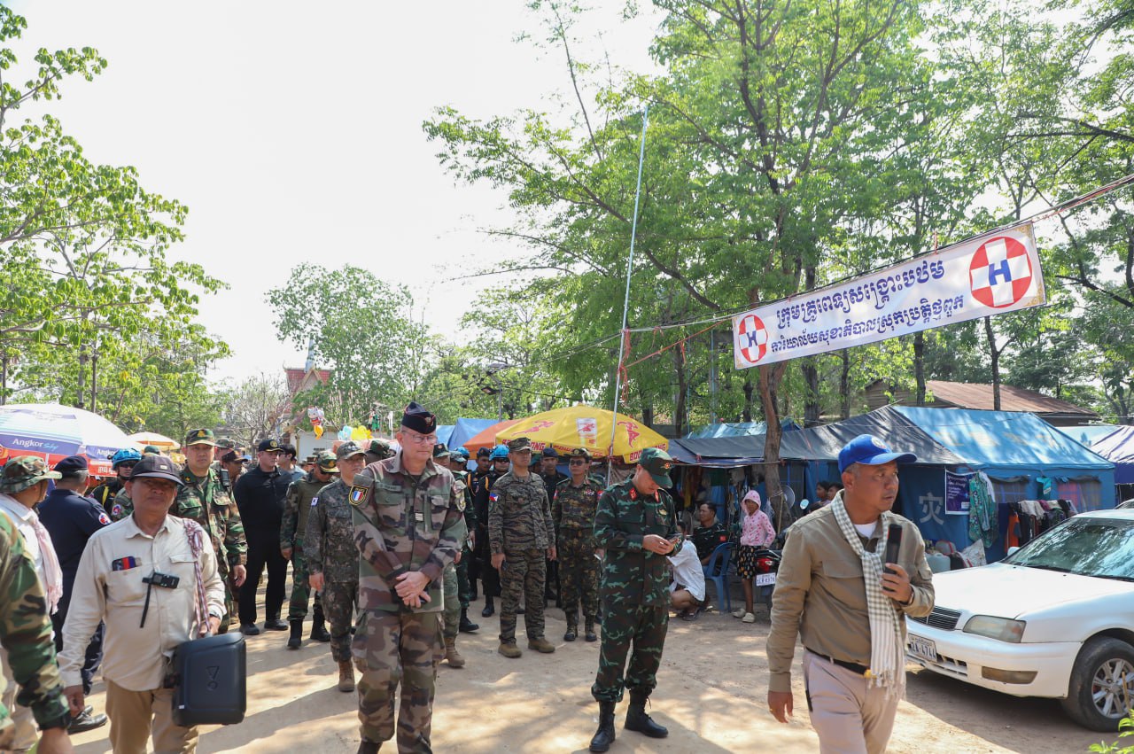 The visit followed an earlier inspection by foreign military attachés of sites in Prey Chan village and the Boeng Trakuon Pass area, where Cambodian officials presented what they described as evidence related to the border situation.