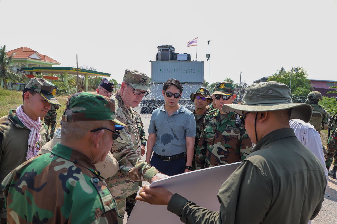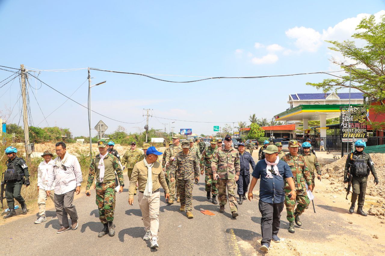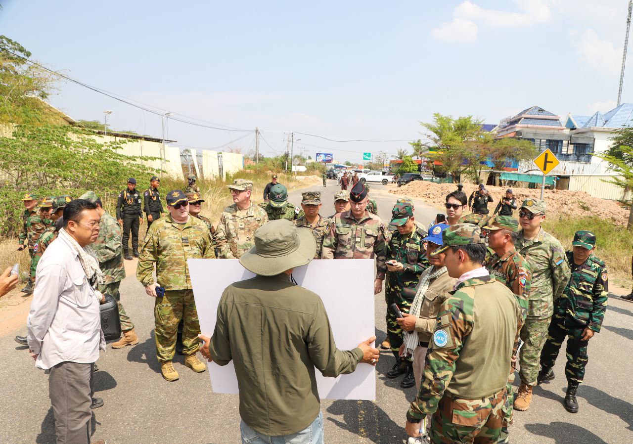 The delegation visited Boeung Trakuan Pass and an unexploded ordnance site in Thmar Puok district, where authorities said fighting in December damaged homes, civilian shops and public infrastructure.