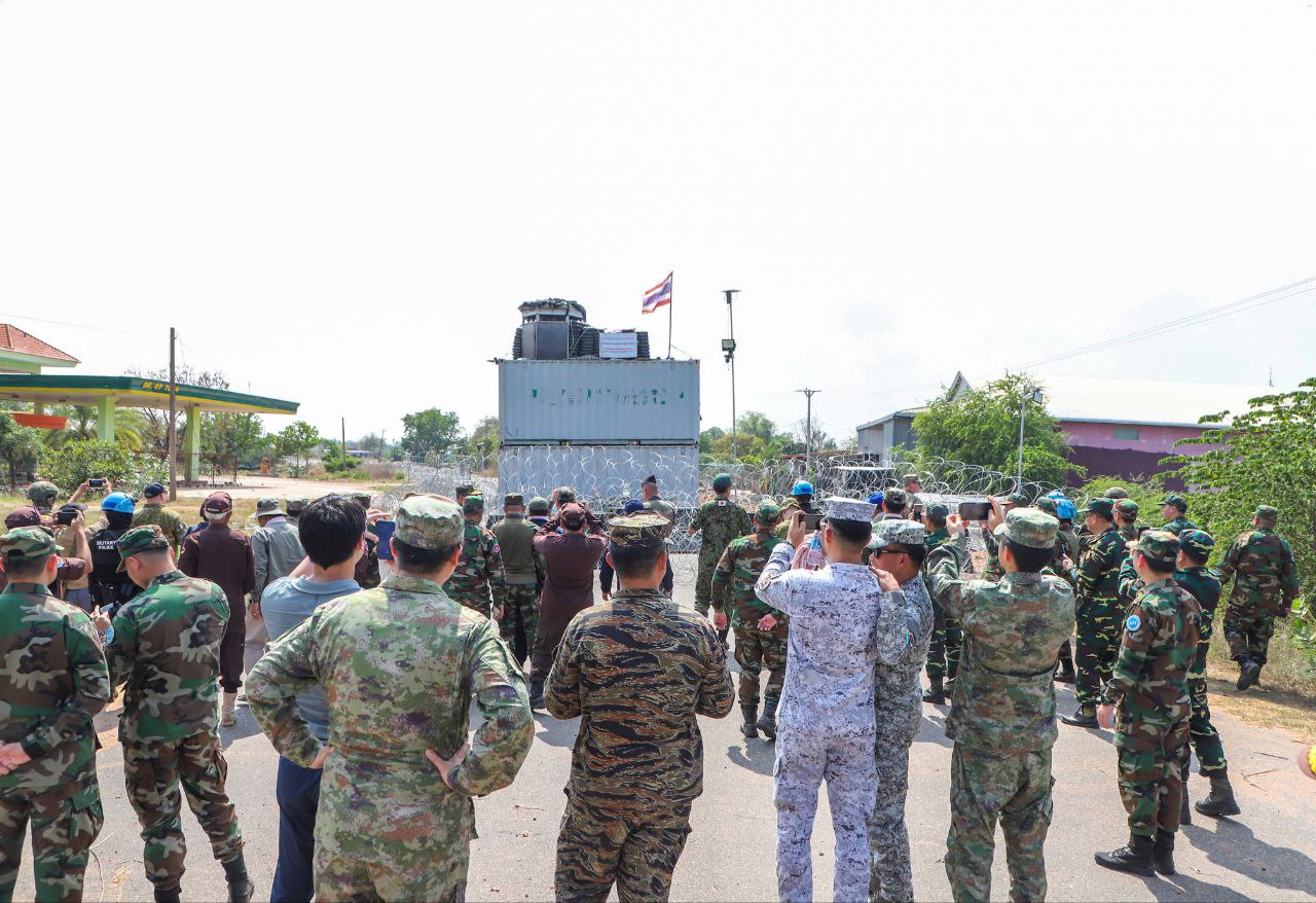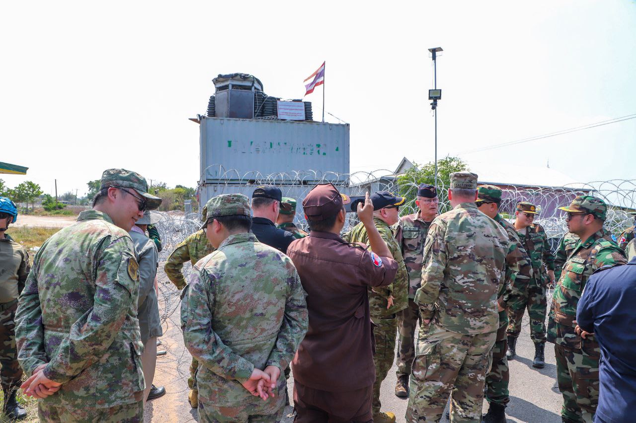 According to the Ministry of National Defence, the visiting diplomats were also shown areas where barbed wire and shipping containers were installed by Thai military forces, as well as locations affected by the fighting.