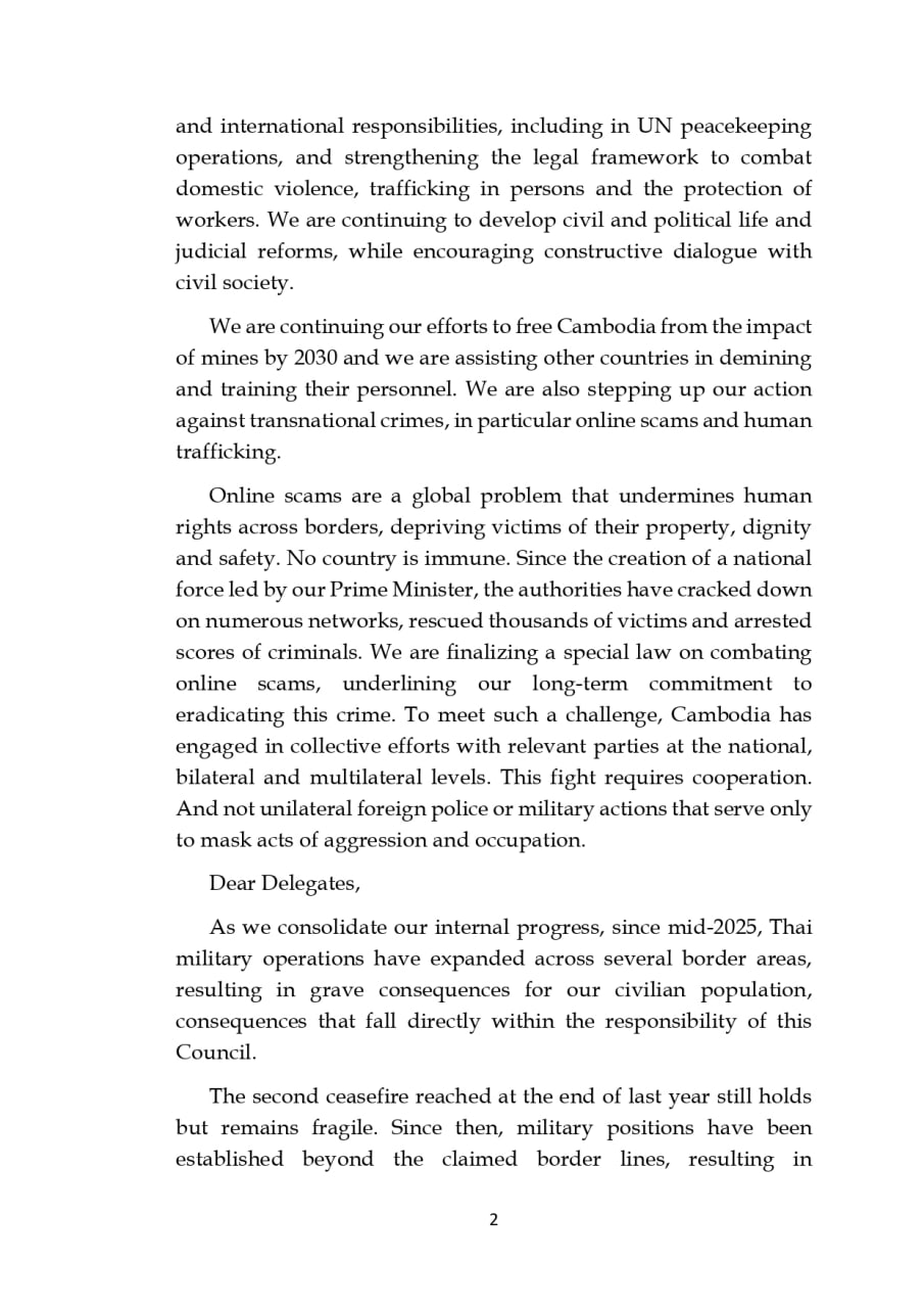 Speaking at the High-Level Segment of the 61st Session of the United Nations Human Rights Council in Geneva, Deputy Prime Minister and Foreign Minister Prak Sokhonn said online scams “undermine human rights across borders, depriving victims of their property, dignity and safety.”
