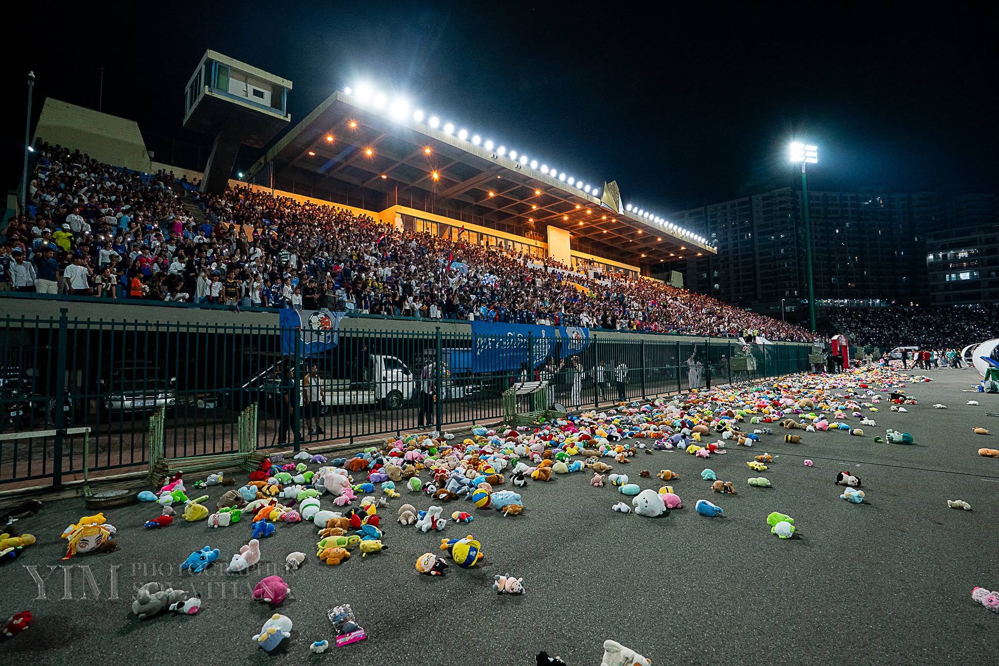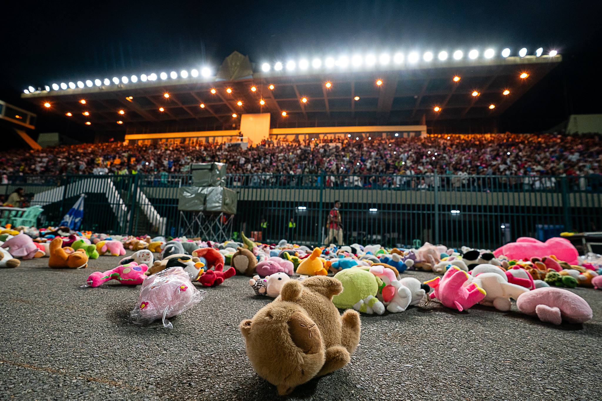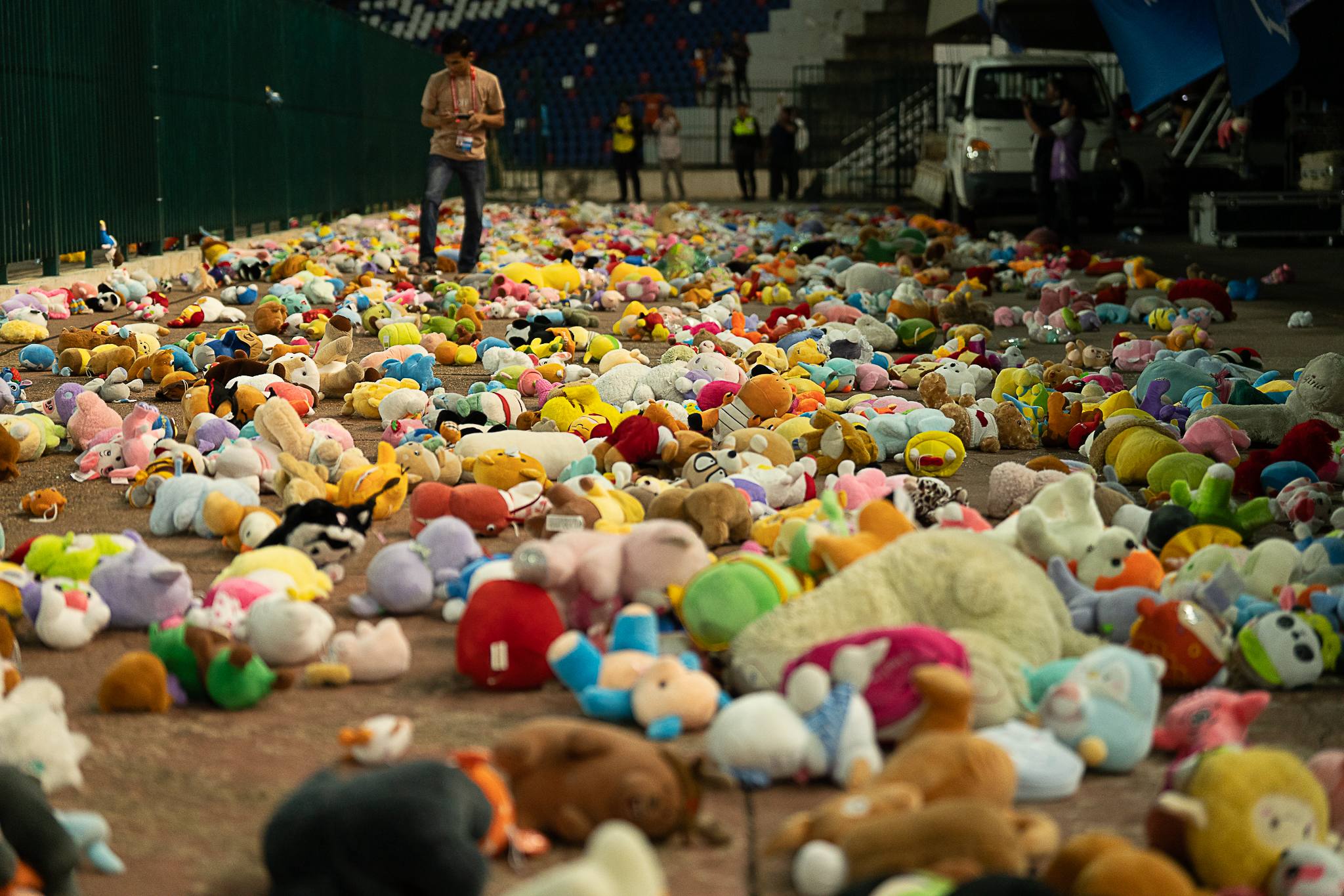 Fans brought toys to the stadium and threw them onto the field, where they were collected by organizers. The toys will be distributed to Cambodian children displaced by recent conflicts, providing comfort and support to those living in temporary shelters.