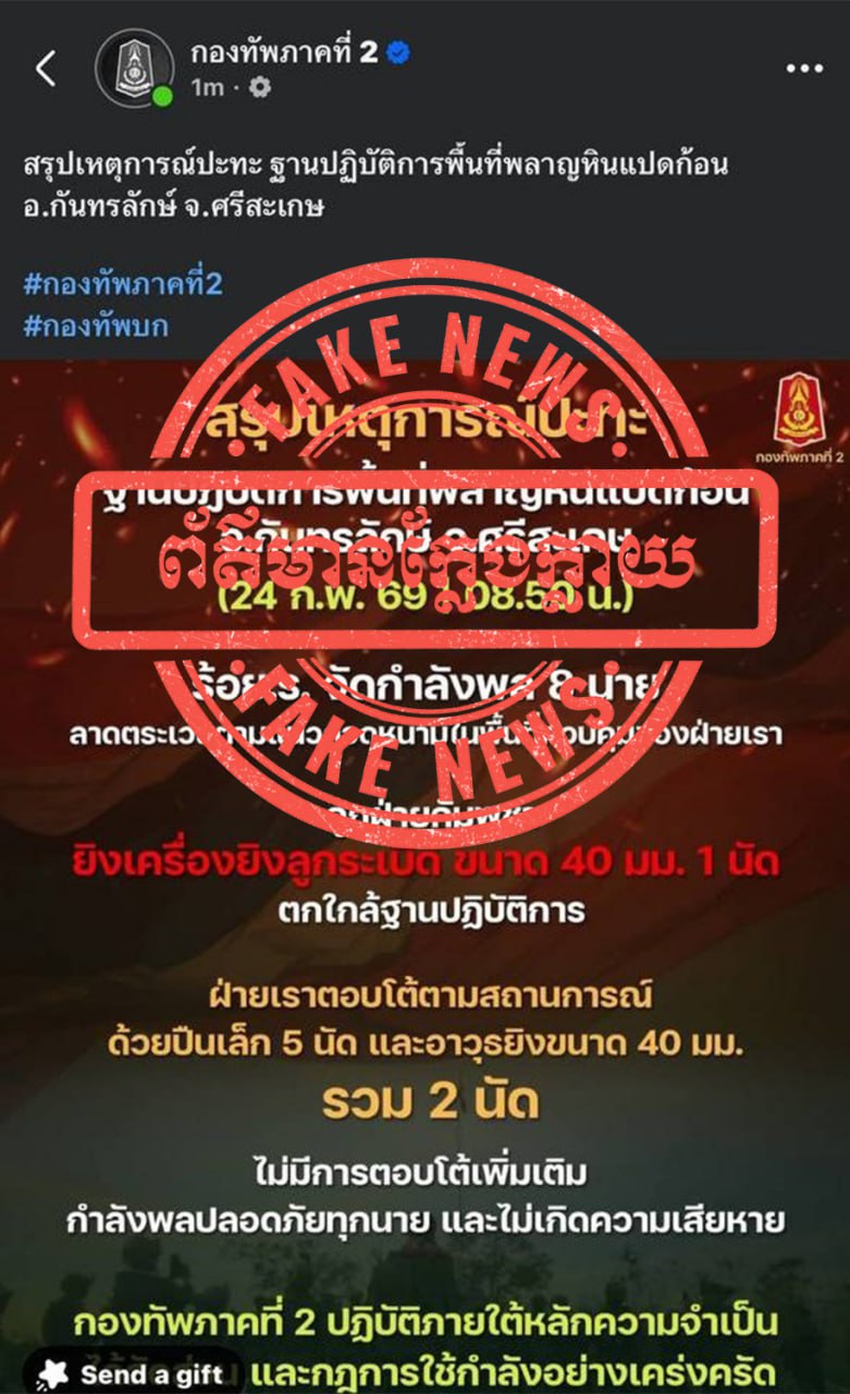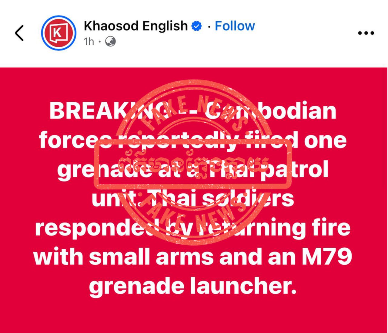 Thai military-linked pages and several Thai media outlets had reported that Cambodian forces fired a grenade toward a position near a Thai patrol base earlier in the day.