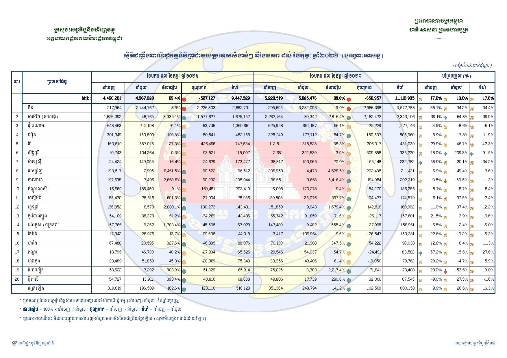 Cambodia’s Trade Surges 17.6% to Over $11 Billion in First Two Months of 2026 Cambodia’s Trade Surges 17.6% to Over $11 Billion in First Two Months of 2026