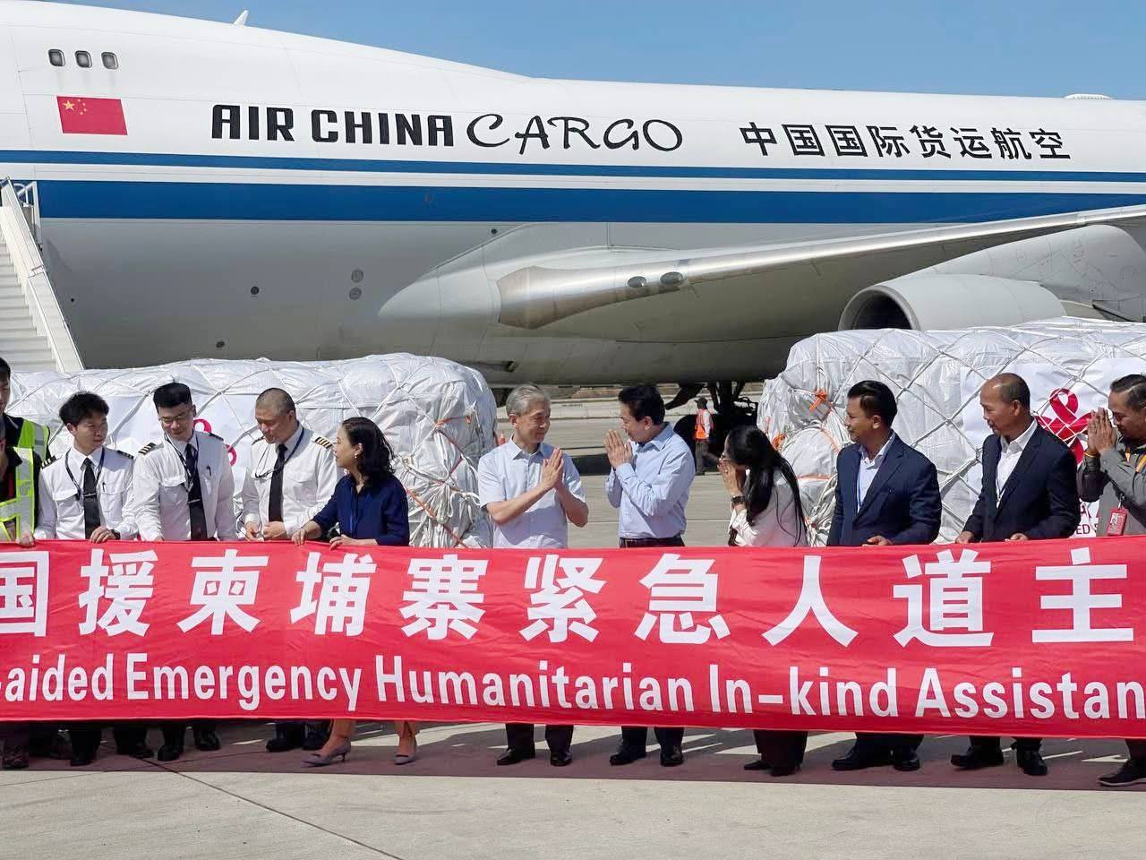 The first batch of Chinese aid arrived in Cambodia today, comprising essential relief supplies including tents, blankets, and food, aimed at alleviating humanitarian needs, improving living conditions, and assisting affected communities in overcoming current hardships.