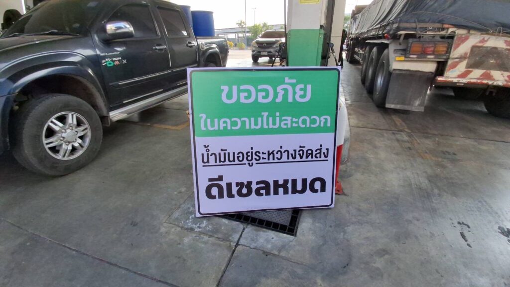 In northern Phrae province, several stations in Long district have run out of diesel, leaving drivers stranded while awaiting new deliveries. Only limited gasoline supplies remain, with some pumps forced to close temporarily.