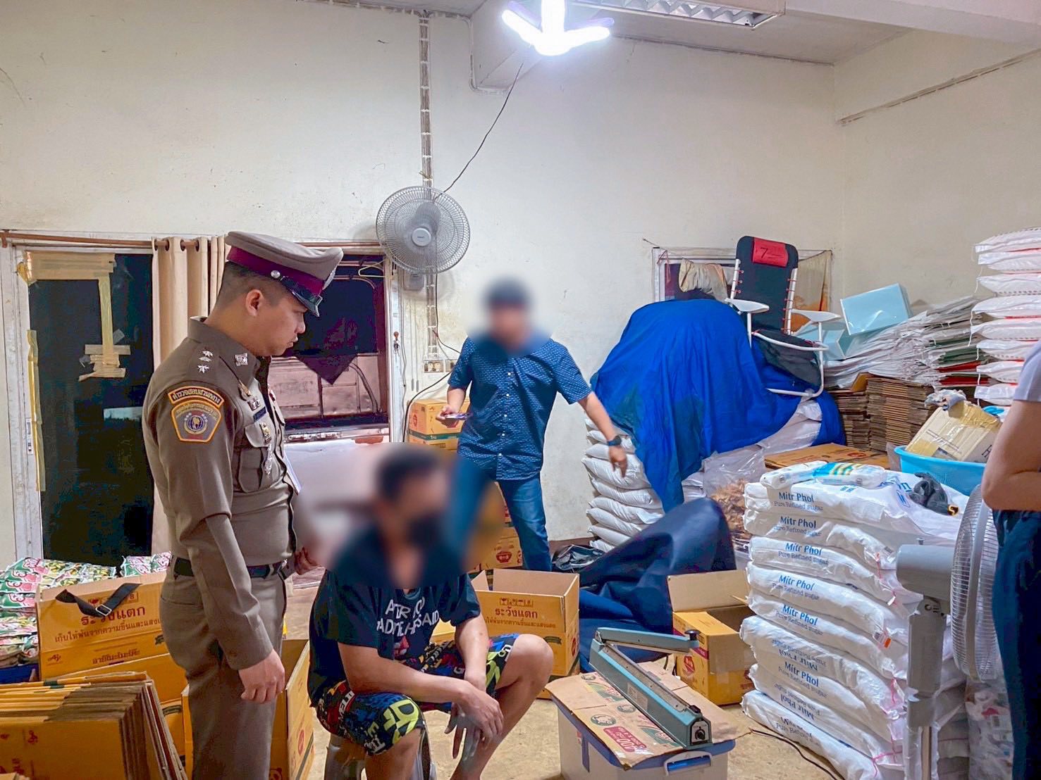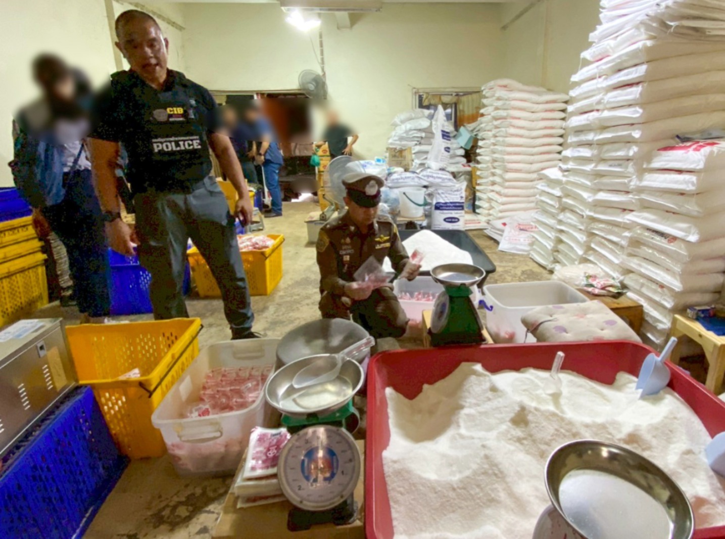 The joint operation by the Central Investigation Bureau and the Food and Drug Administration followed a three-month investigation that traced supply chains from provincial traders to a production site in Bang Khun Thian district.