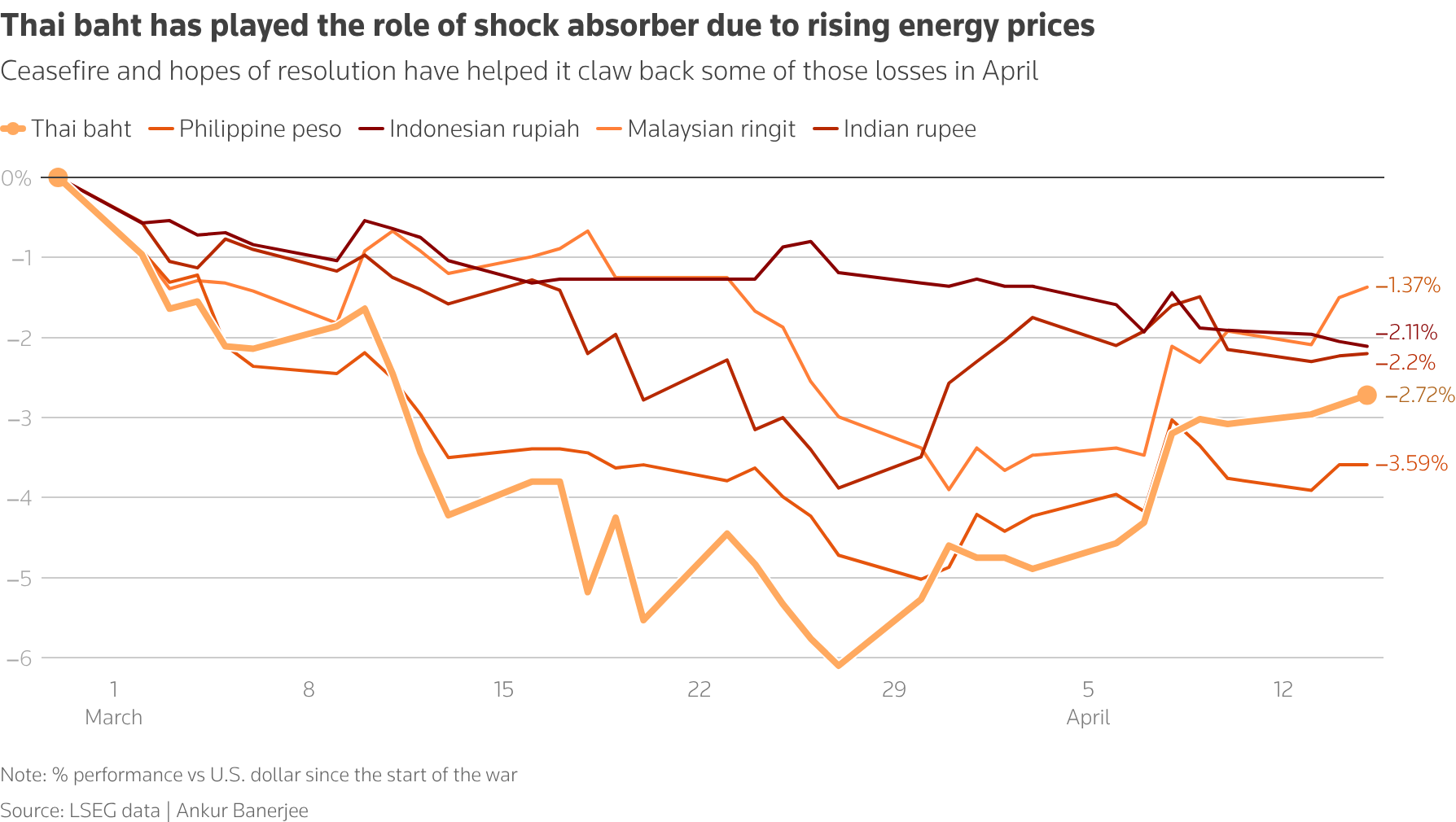 The Thai baht has weakened since the conflict began, though it has partially recovered following a temporary ceasefire. Still, economists caution that prolonged instability could intensify inflation pressures, with projections suggesting inflation could rise to as much as 3.5% this year.
