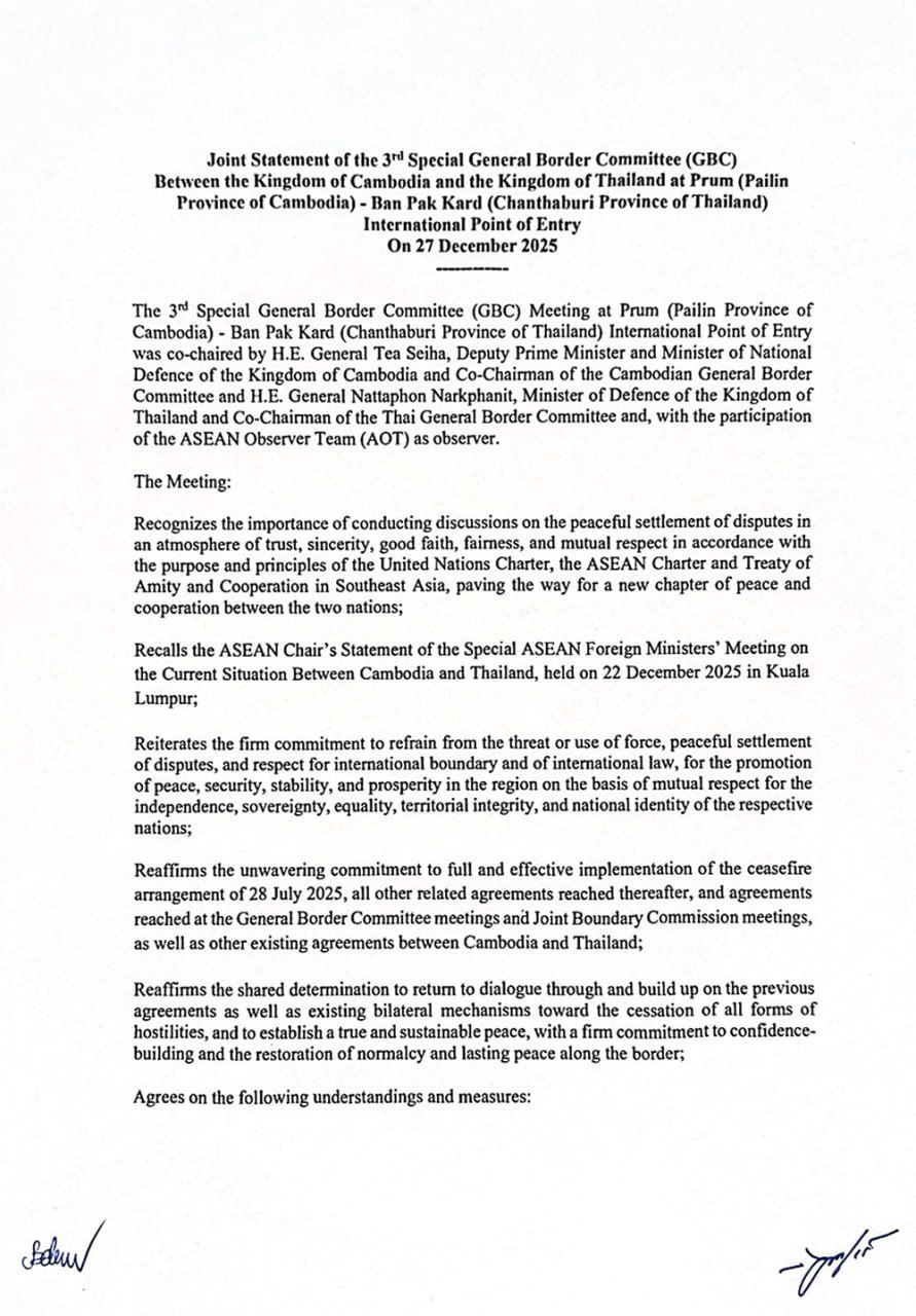 Berlin, 27 December 2025 — Germany has welcomed the ceasefire agreement between the Kingdom of Cambodia and the Kingdom of Thailand, describing it as a sign of hope following weeks of violence and a critical step toward restoring security and stability, particularly for internally displaced persons affected by the conflict.