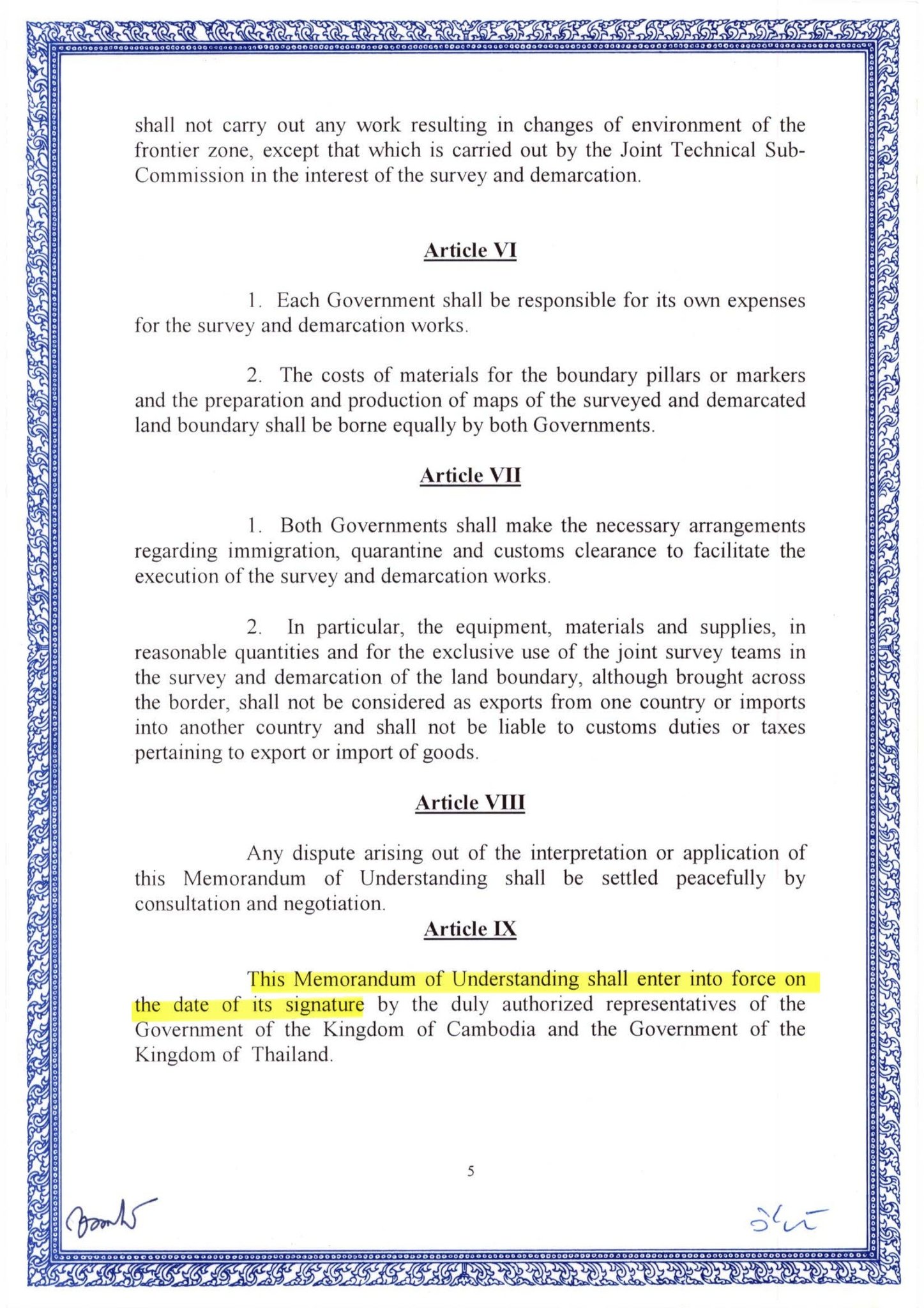 The agreement remains valid until its objective—the complete measurement and demarcation of the land boundary between Cambodia and Thailand—is fully achieved. Therefore, no party has the legal right to terminate the MOU without the consent of the other.