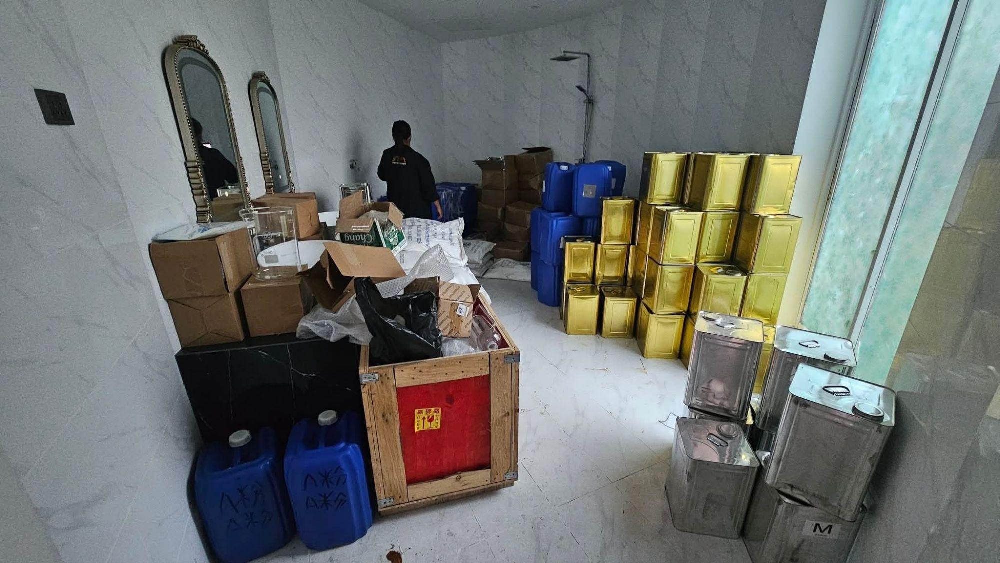 Inside the property, police found three chemical production stations and large quantities of substances. Preliminary on-site tests indicated the presence of methamphetamine, ketamine and MDMA, authorities said.