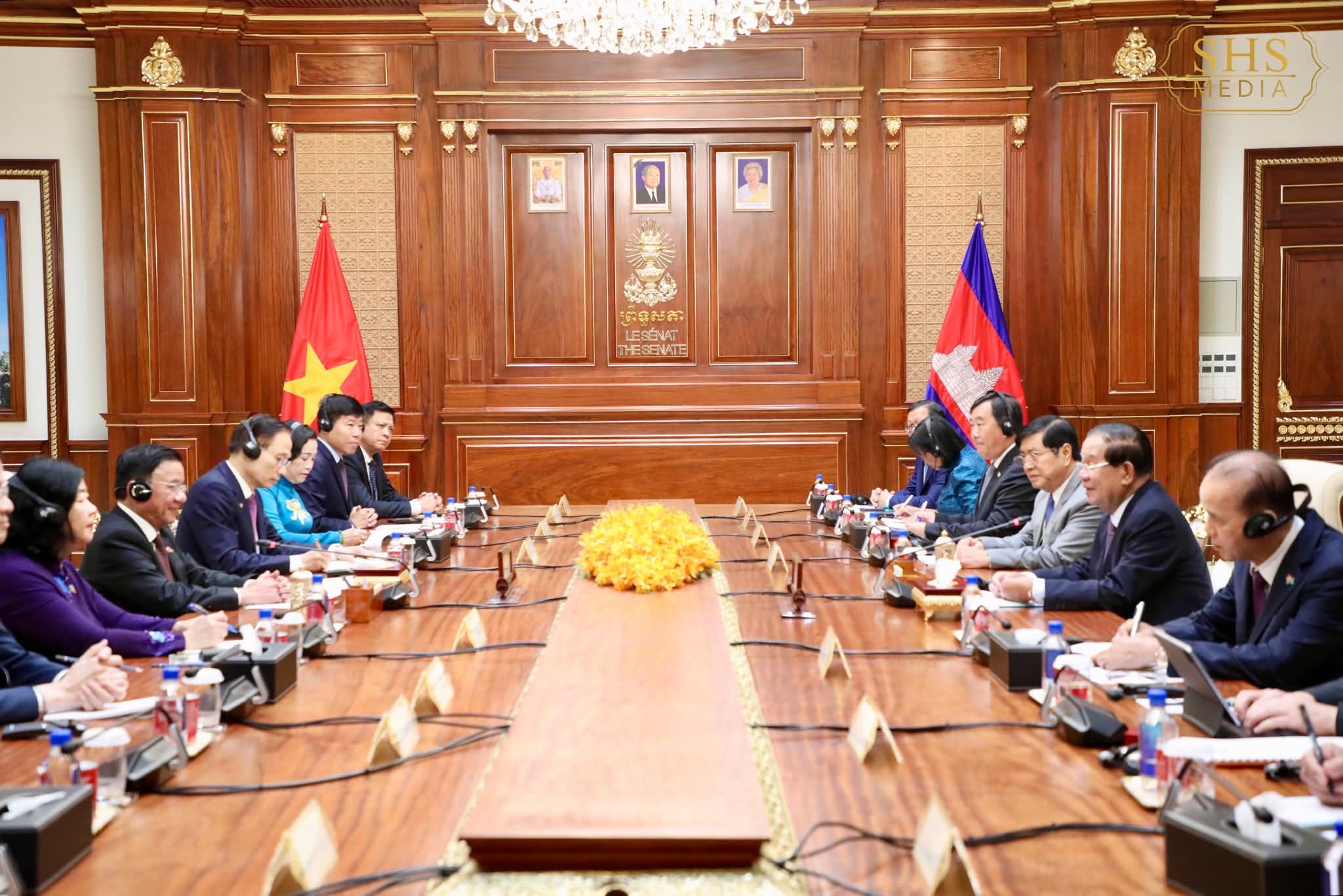 During the meeting at the Senate Palace, Hun Sen welcomed the visit by Tran Cam Tu, a member of the Politburo and standing member of the Secretariat of the Communist Party of Vietnam, describing it as a reflection of the “strong and trusting relationship” between the two neighboring countries.