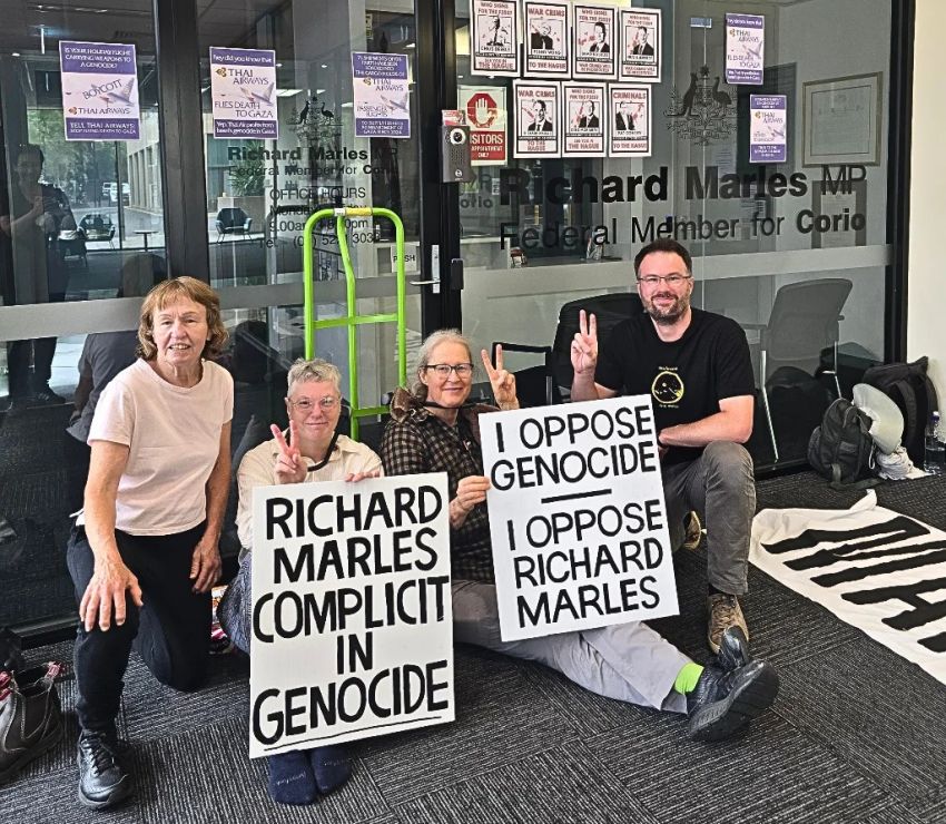 “Thai Airways Fly Death to Gaza”: Demonstrators Disrupt Marles’ Office