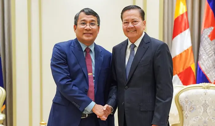 A delegation led by Vietnam’s Permanent Deputy Foreign Minister Nguyen Minh Vu met with Cambodia’s First Deputy Prime Minister Neth Savoeun in Phnom Penh on Friday to follow up on commitments made at a February 6 summit between senior leaders of the Communist Party of Vietnam and the Cambodian People’s Party.