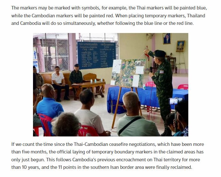 These markers are presented as a result of the peace agreement, proof of correcting Cambodian “encroachment,” and part of “reclaiming” eleven locations.